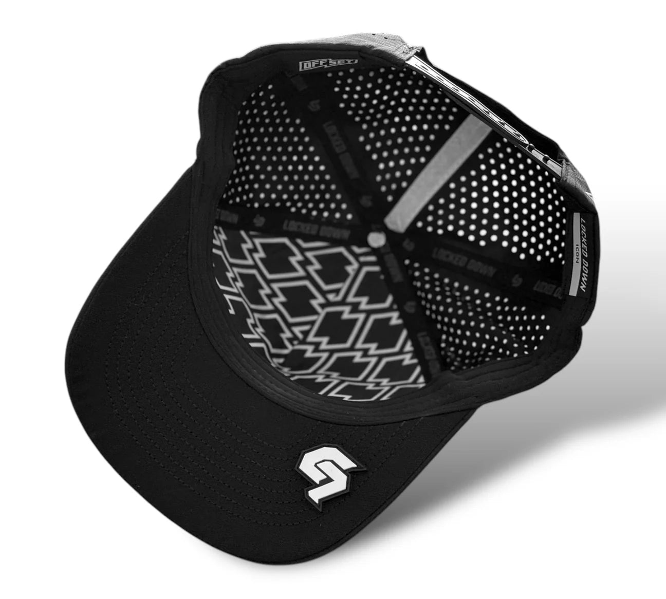 The hat also features a soft rubber snapback closure for a secure, comfortable fit and laser-cut holes for enhanced breathability.